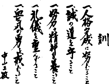 Hitotsu! jin kaku kansei ni tsutomuru koto.